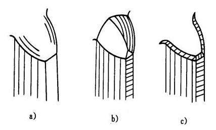 a)倒(dao)圆 b)倒(dao)尖(jian) c)倒(dao)棱