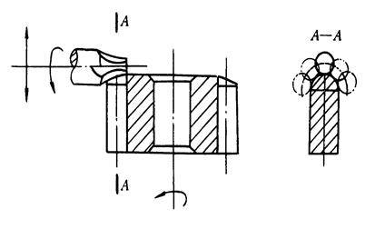 下(xia)面的(de)图是用(yong)指状立(li)镗(tang)刀(dao)片对齿(chi)端(duan)停(ting)此倒(dao)圆的(de)生(sheng)(sheng)产(chan)制(zhi)作标识图。倒(dao)圆时,立(li)镗(tang)刀(dao)片迅速扭转弹簧,并沿(yan)圆弧作摆动旋(xuan)转,生(sheng)(sheng)产(chan)制(zhi)作完(wan)一些(xie)齿(chi)后(hou),部件退离立(li)镗(tang)刀(dao)片,经量程(cheng)再(zai)迅速向立(li)镗(tang)刀(dao)片相近生(sheng)(sheng)产(chan)制(zhi)作下(xia)一些(xie)齿(chi)的(de)齿(chi)端(duan)。齿(chi)端(duan)生(sheng)(sheng)产(chan)制(zhi)作需要在蜗轮蜗杆(gan)表面淬火过后(hou)停(ting)此,只要都是在滚(插)齿(chi)后(hou)期,剃齿(chi)过后(hou)主(zhu)宰齿(chi)端(duan)生(sheng)(sheng)产(chan)制(🐟zhi)作。